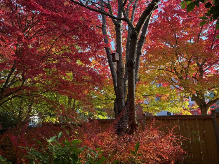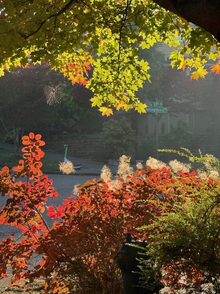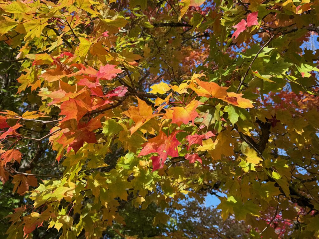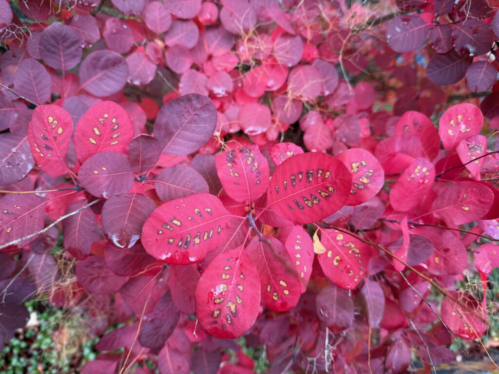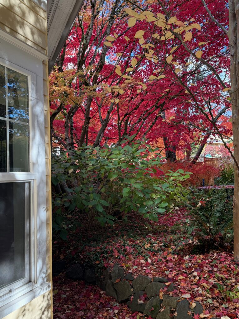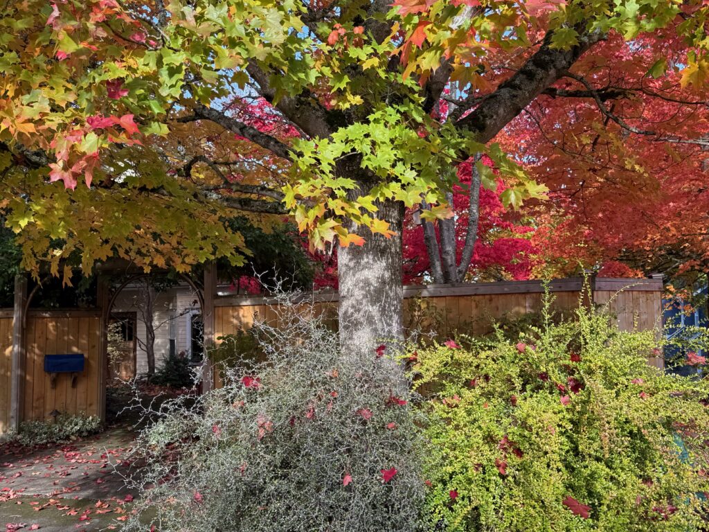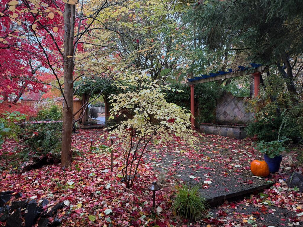 trees and bushes + colorful leaves = stunning autumn in our October garden