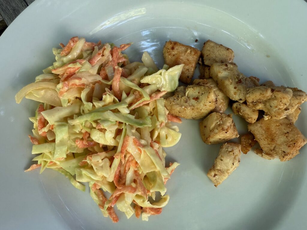 I don’t make it very creamy, and sometimes even top it with pecans or walnuts to enhance the crunchiness. It’s refreshing and tasty on its own, or as a side dish.
